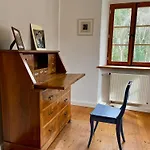 Das Apartment ist ebenfalls mit Parkettbodenbelag ausgestattet. In den Zimmern können Sie den Blick über den Garten genießen.